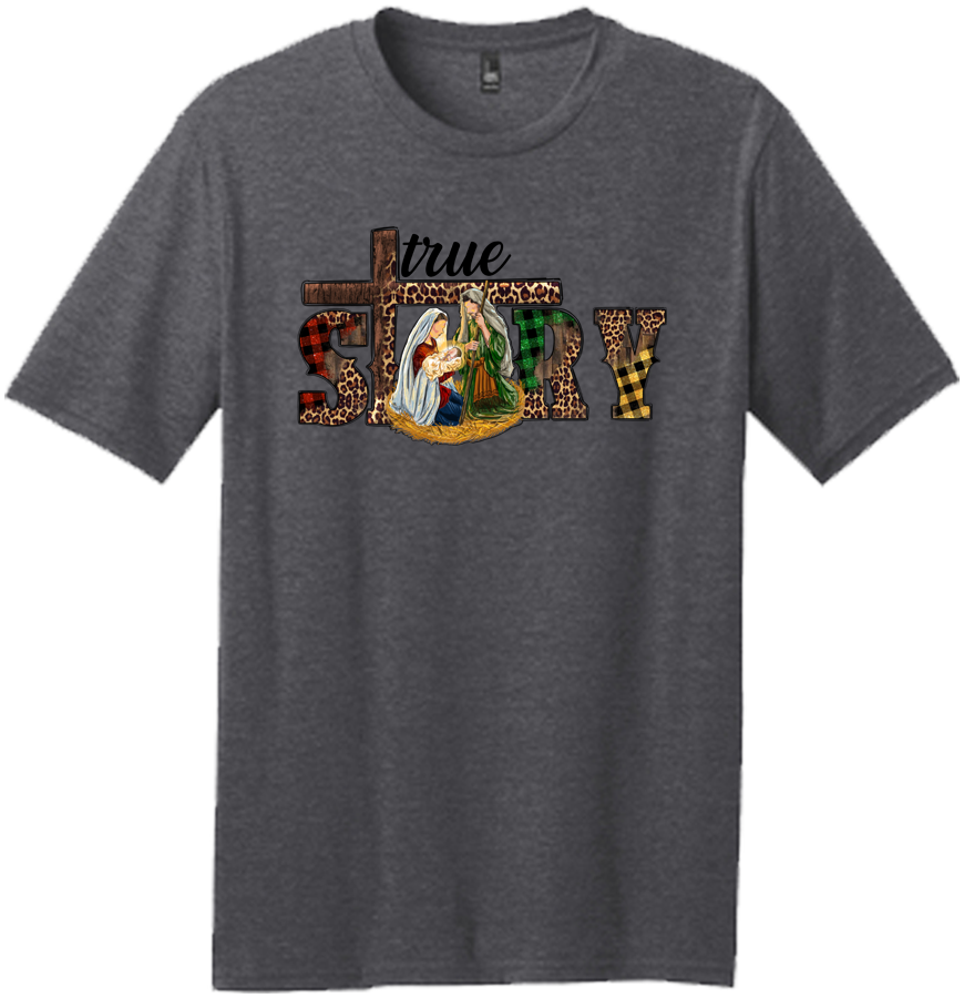 The True Story Tee from our Faith Apparel collection is the perfect blend of comfort and style. Made with high-quality materials, this t-shirt is super soft and breathable, making it perfect for everyday wear. The shirt features a bold graphic design that celebrates the true meaning of Christmas, reminding wearers of the incredible story of the birth of Jesus. Wear it on its own or layer it under your favorite sweater for a cozy yet stylish look. This tee is a must-have for anyone who loves to share their faith and values authenticity.